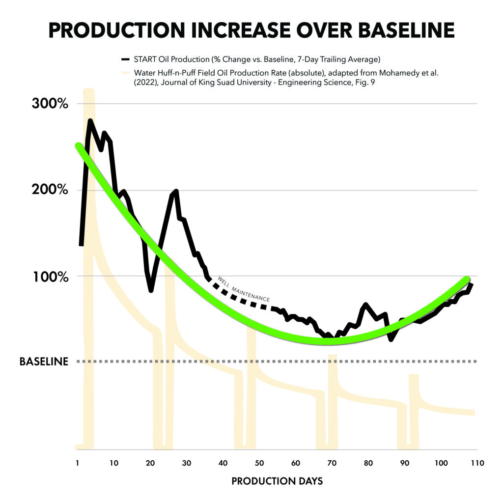 What START has achieved is not “better EOR.” It is something not previously observed in petroleum engineering: reshaping a reservoir’s chemistry downhole, increasing production output, and producing cleaner, more refined oil that is richer in light hydrocarbons.